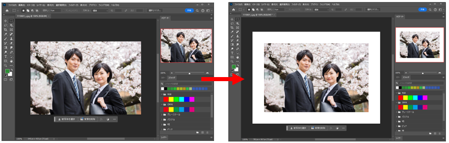 主に、画像の背景を引き伸ばすためカンバスを大きくしたり、画像の回りに余白を付ける場合にカンバスサイズを変更します。