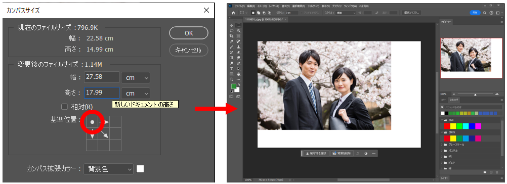 基準位置を指定してカンバスサイズを変更する