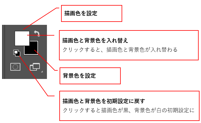 Photoshopには描画色と背景色があり、描画色は色や線を塗る場合に使用します。