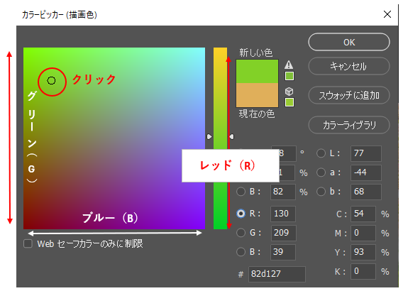 カラーフィールドをクリックして、残る2色の数値を調整します。