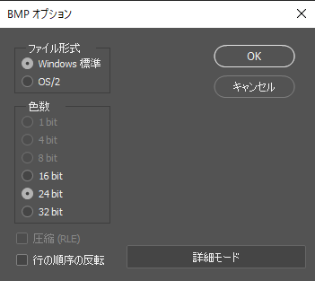 BMP形式はWindows標準のファイル形式で、RGB、インデックスカラー、グレースケール、モノクロ2階調の4つのカラーモードをサポートしています。レイヤーは保持できませんが、クリッピングパスは保持して保存されます。