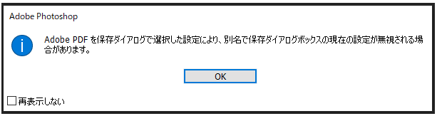 「別名で保存ダイアログボックスの現在の設定が無視される場合があります。」というダイアログボックスが表示されるのでOKボタンをクリックします。