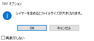 レイヤーが含まれていると、「レイヤーが含めるとファイルサイズが大きくなります。」というダイアログボックスが表示されますが「はい」をクリックします。