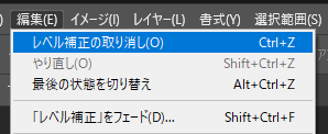 また、画像を閉じるとすべての履歴は消去されます。メニューの「編集」→「環境設定」→「パフォーマンス」を選択して、ヒストリー数を変更することができます。ただし大きな値を入れすぎるとメモリが多く必要になり動作が不安になることもあります。