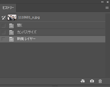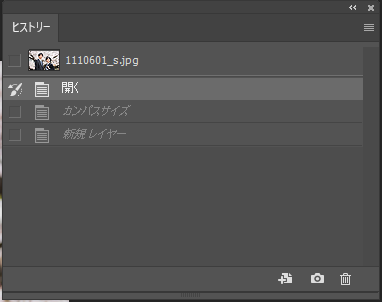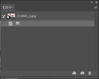 画像を開くと「ヒストリー」パネルには、ファイル名と開くが表示されます。