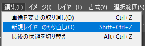 メニューの編集の「取り消し」と「やり直し」で操作を直前の操作を取り消したりやり直したりすることができます。