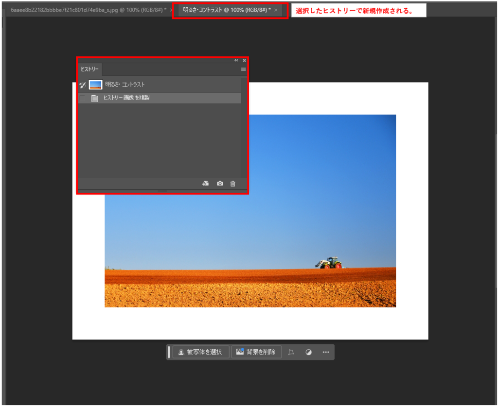 ヒストリーパネルの履歴から新規ファイルを作成することもできます。