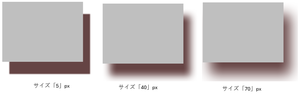 6、「サイズ」で大きさを設定します。数値を大きくするほど、ぼやけた影になります。光源が近いときのように、対象物を影が包み込むような設定ができます。