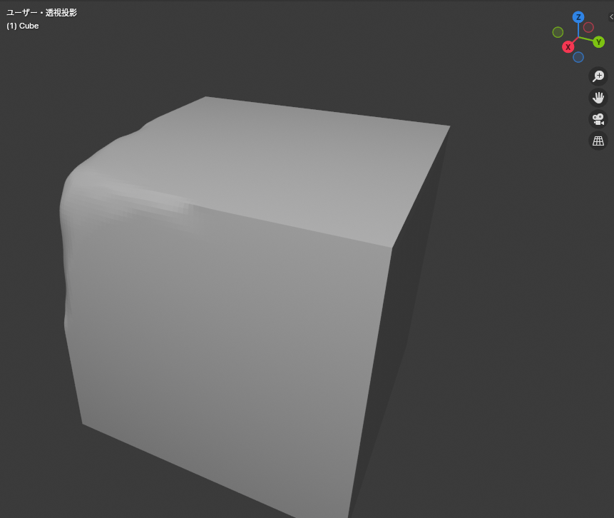 ストロークにより変形する部分はオブジェクトの頂点部分です。したがって、頂点数が少ないオブジェクトの場合、変形が粗く、広い範囲が変形します。細かい形状をスカルプトするには細かい多くの頂点が必要となります。