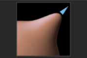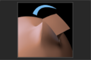 ブラシの影響範囲内のメッシュを折り曲げたり、引っ張ったりして形状を変形します。体積のない板状オブジェクトなどの編集に向いています。