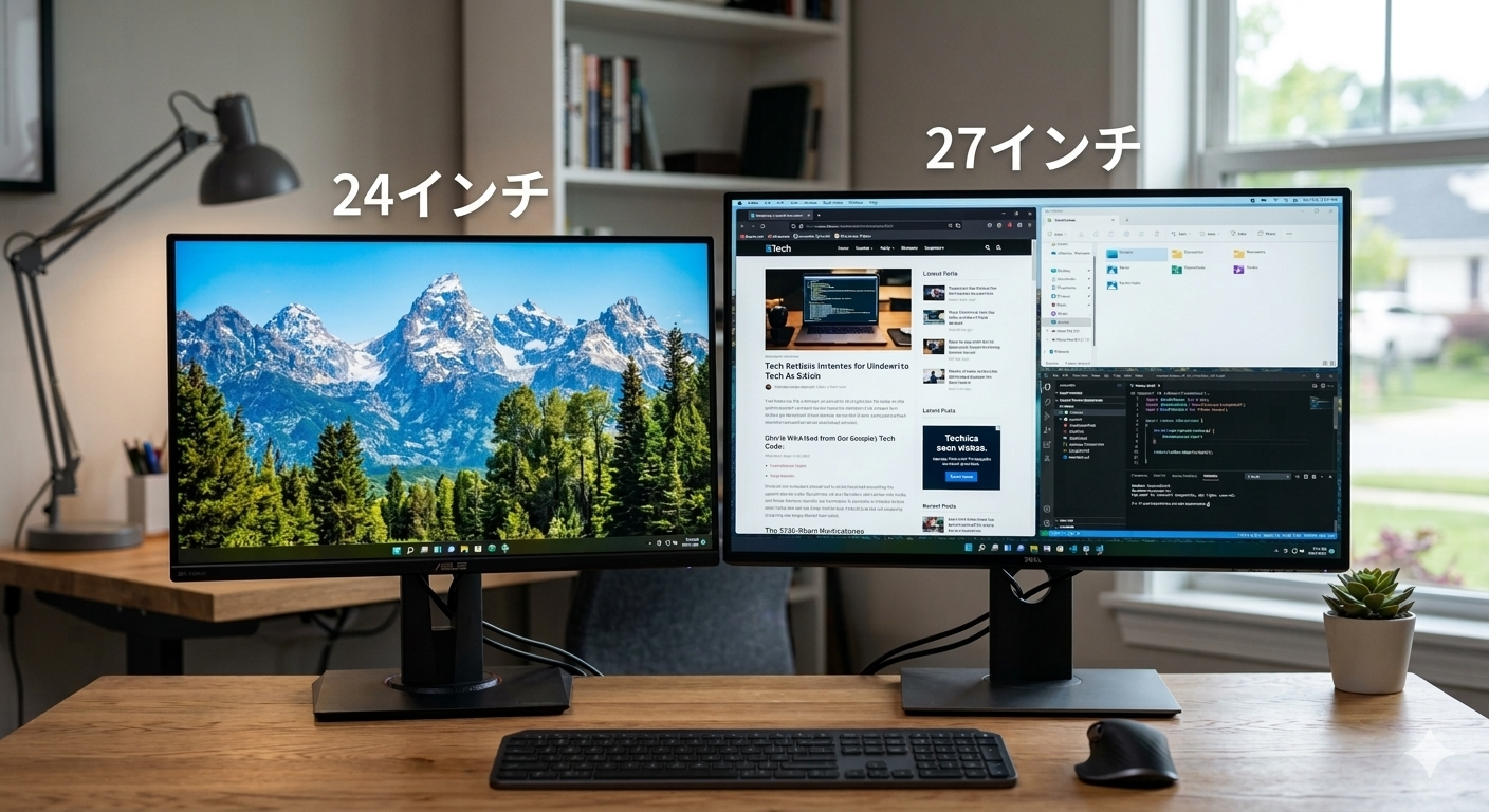 筆者が過去使用したことがあるディスプレイサイズは、24インチ、27インチ、32インチを使用したことがあります。
