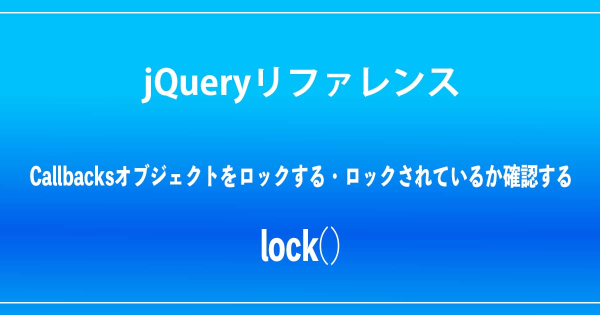 lock()はCallbacksオブジェクトをその時点の状態、その時点で与えられている引数で「ロック」します。ロック前にadd()されていたコールバックはfire()しても実行されません。「memory」フラグを指定して生成したCallbacksオブジェクトでは、lock()後にadd()で追加することでコールバックを実行できますが、リスト中の各コールバック関数に渡される引数をロックした時点に固定...